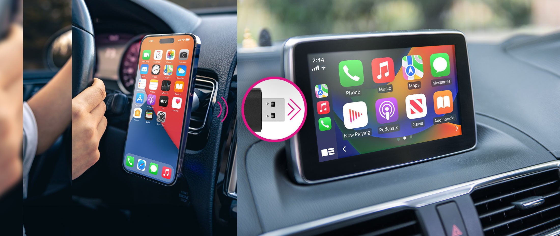 The adapter is Plug & Play ready with no app to download. Plug the adapter into your car’s USB port and the adapter will instantly recognize the proper OS and auto connect to your phone. Connect up to 2 phones. Press the button on the unit to toggle between phones.