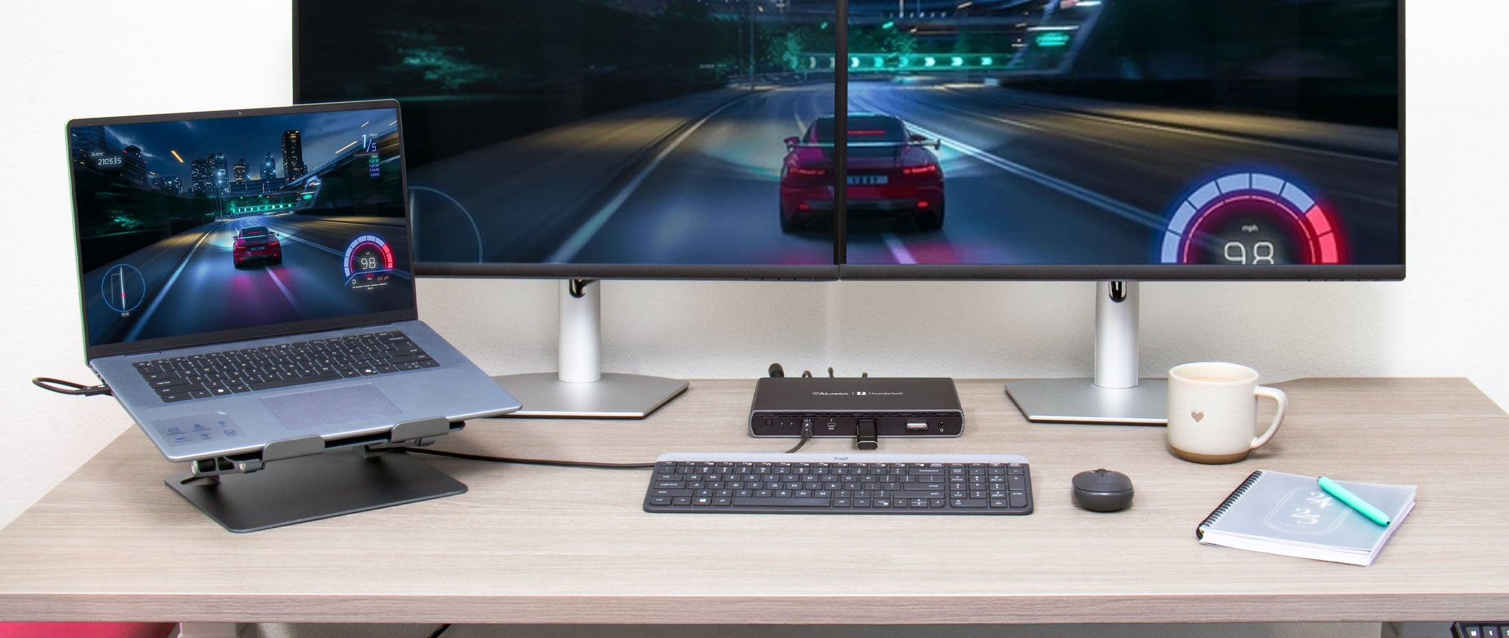 The Thunderbolt™ 5 Dock is an all-in-one docking station designed for professionals and gamers who need to meet the demands of high performance Mac and Windows laptops. Easily run multiple 4K or 8K displays, connect numerous USB peripherals, transfer data up to 80 Gbps and keep your workspace organized.